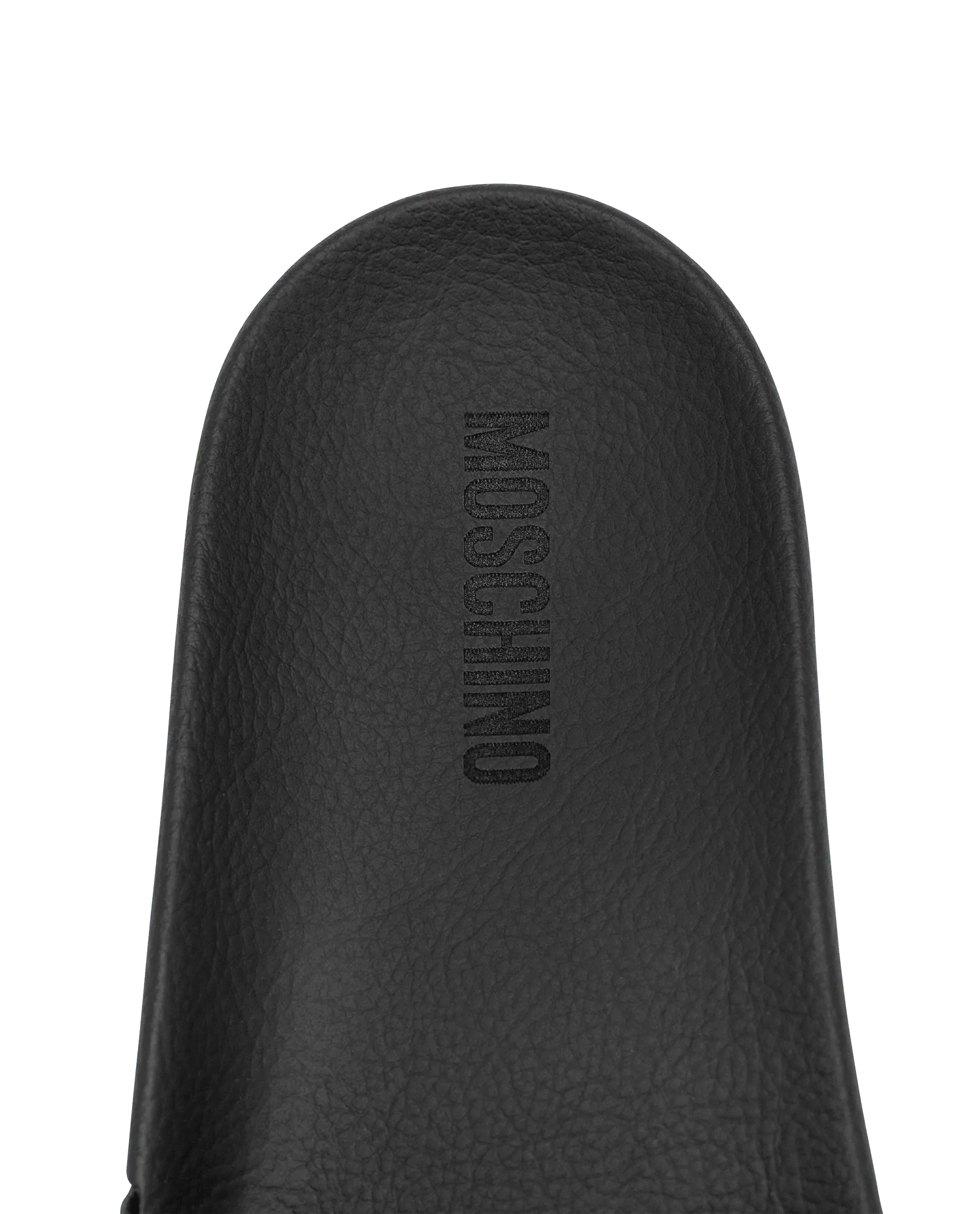 Moschino Logo-embossed Textured Slides - Black | Editorialist