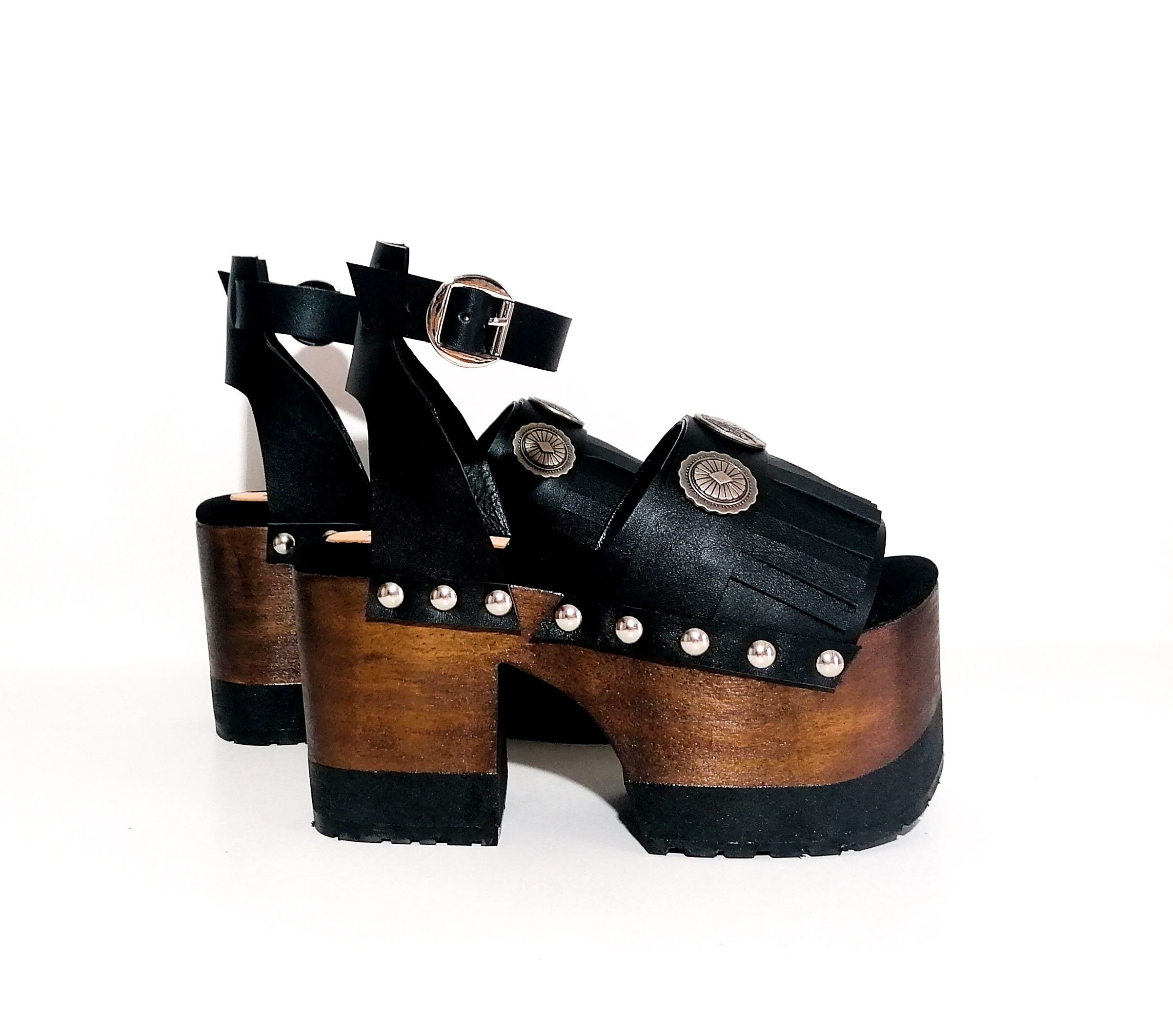 70s Style Platform Sandals Made of Leather - Etsy | Wooden platform sandals, Platform sandals