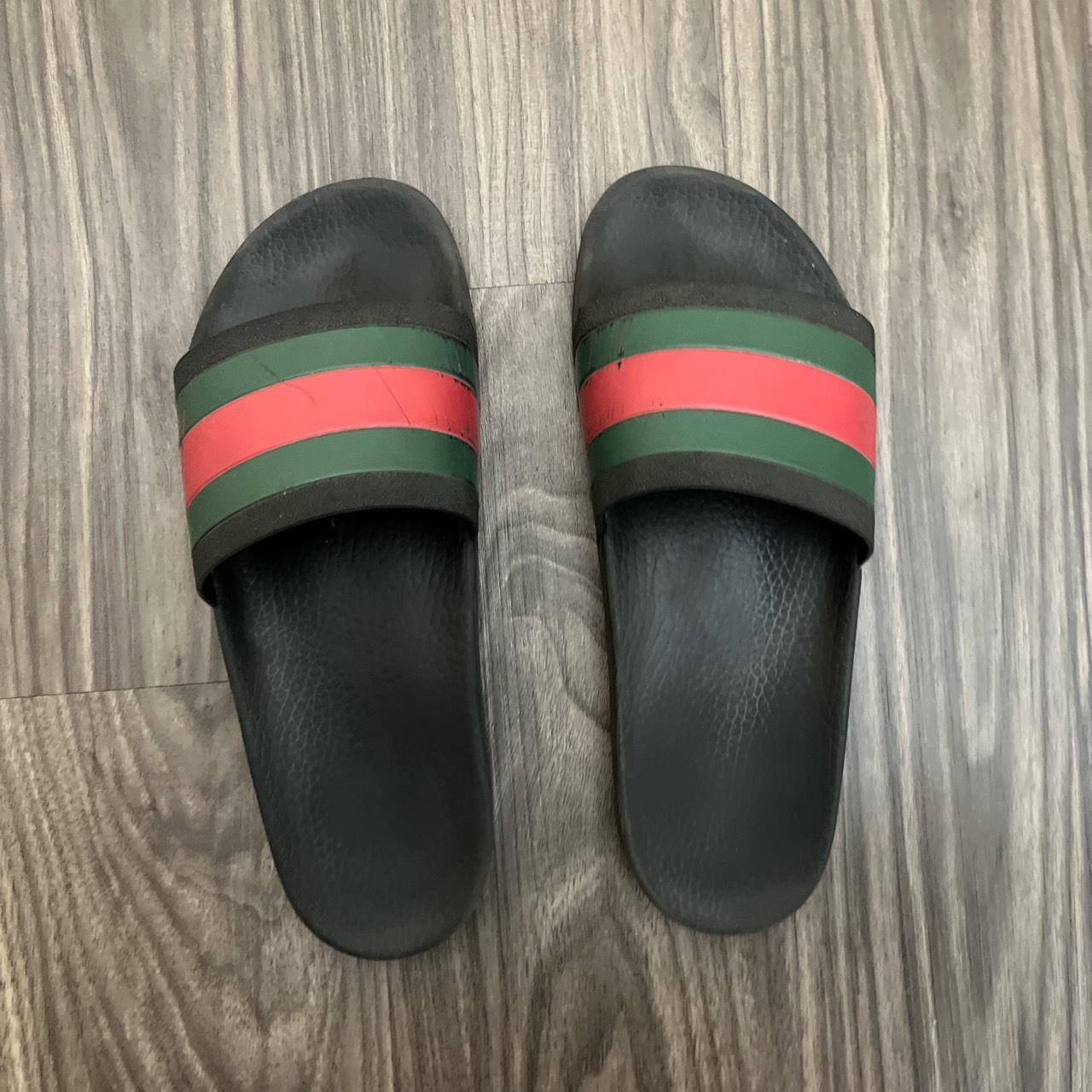 Gucci menâs slides, size 9.5, pretty much brand new - Depop
