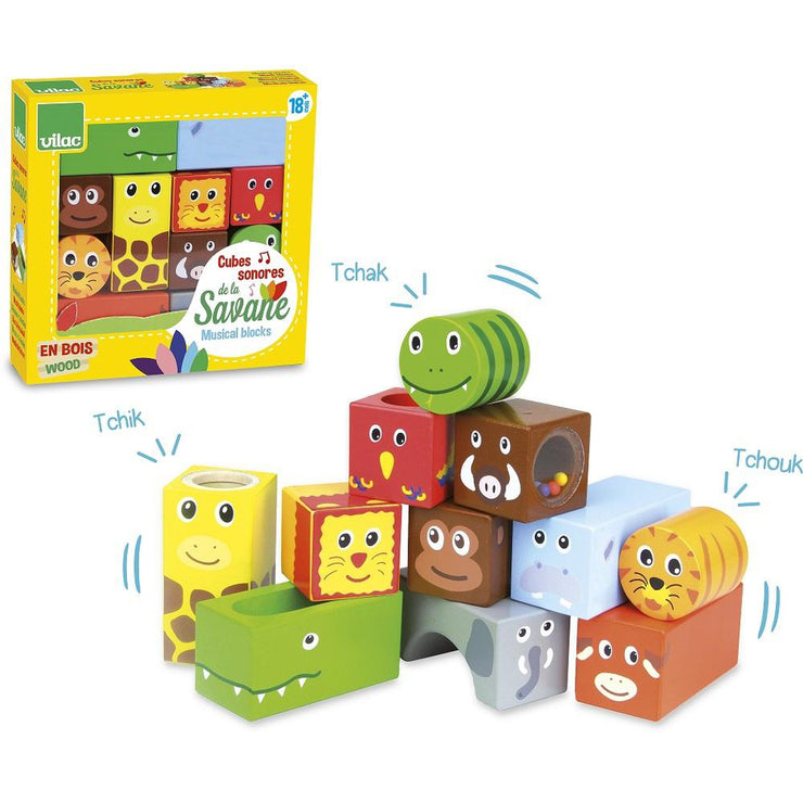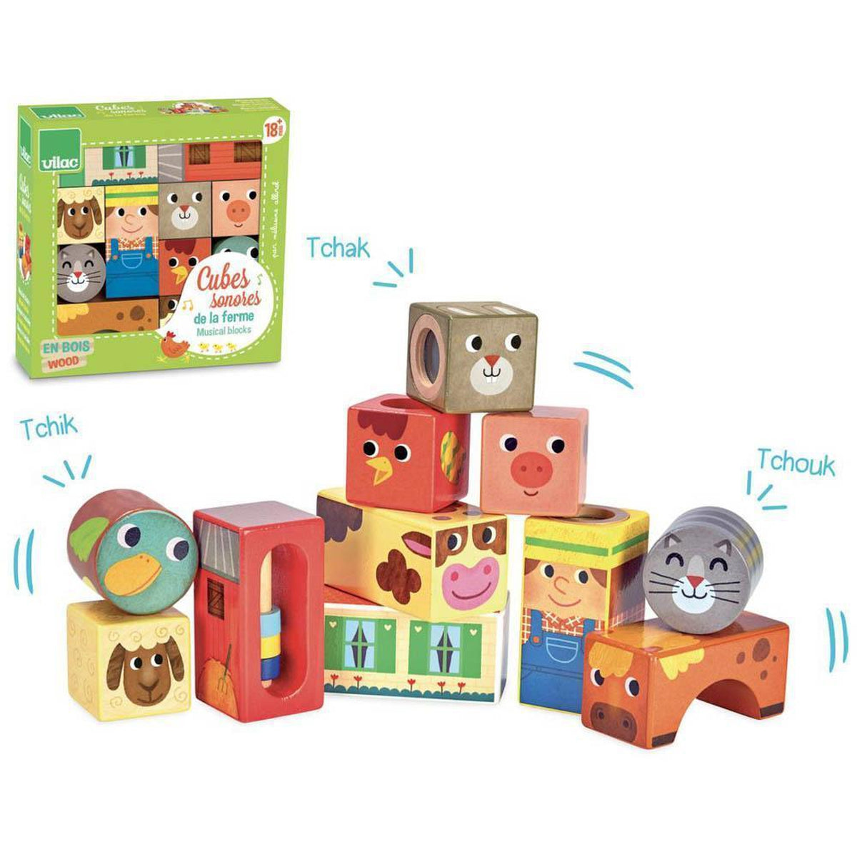 Vilac - Wooden Farm Musical Blocks (8cm) | Childrensalon