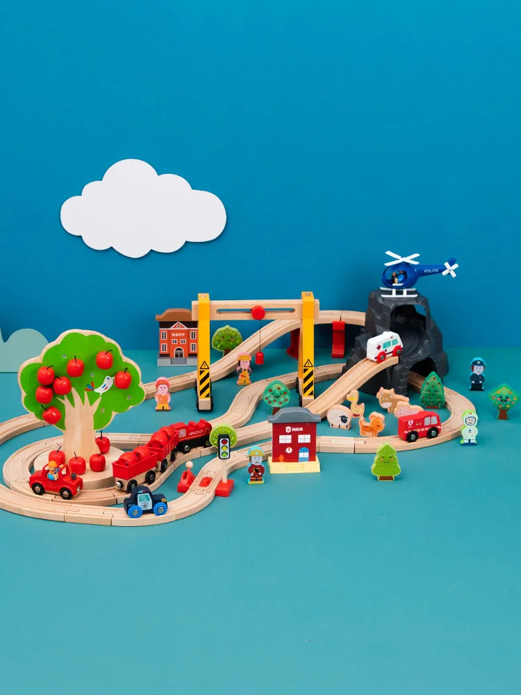 Electric Train Track Set Magnetic Educational Slot Brio Railway Wooden Train Track Station Toy