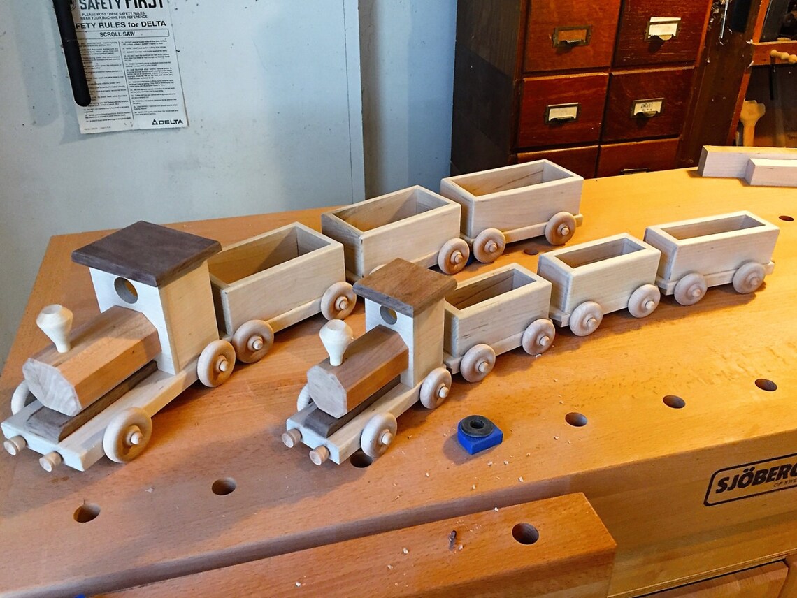 built a wooden train for my son as a Christmas present. : r/woodworking