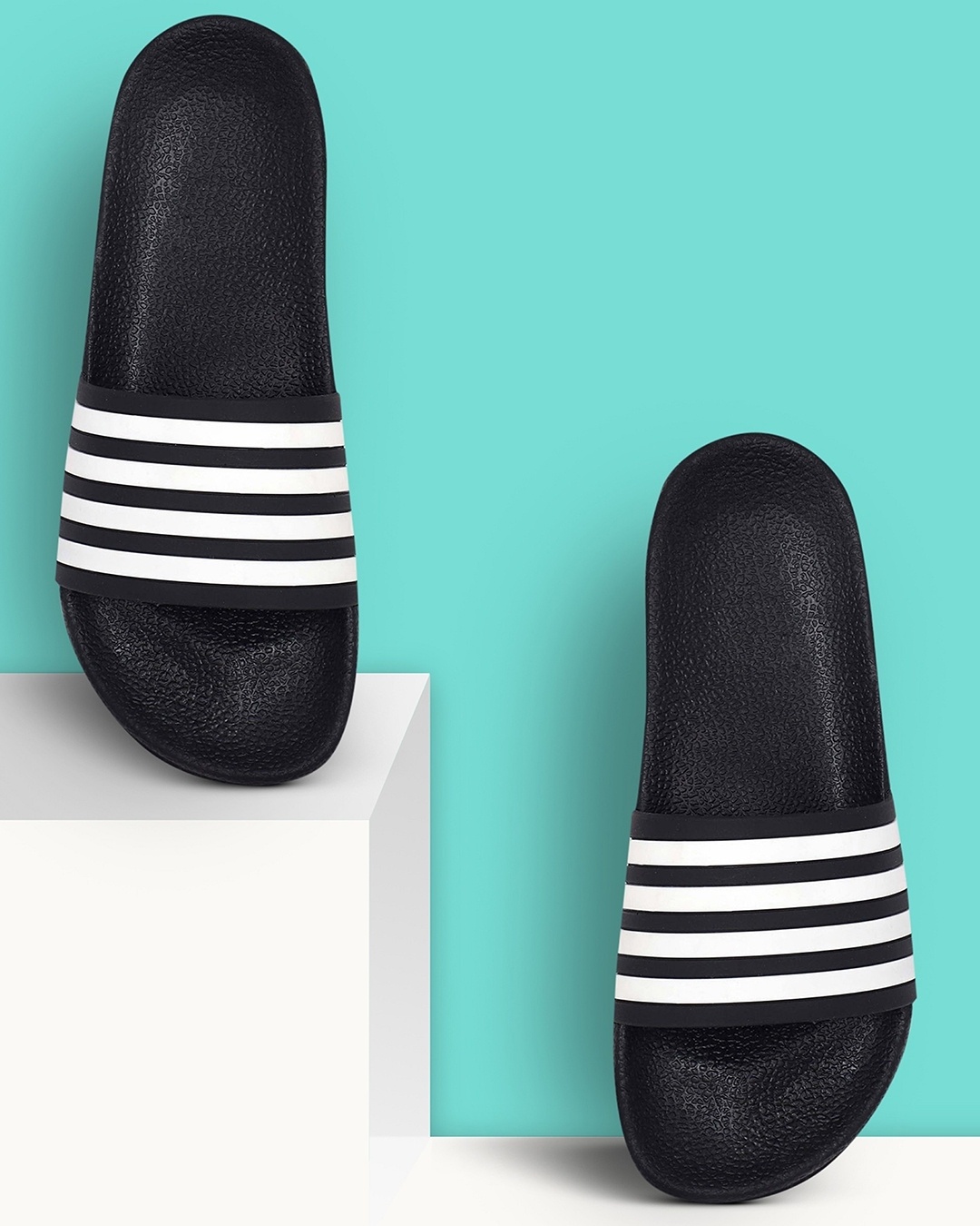 Buy Men's White Striped Sliders Online in India at Bewakoof