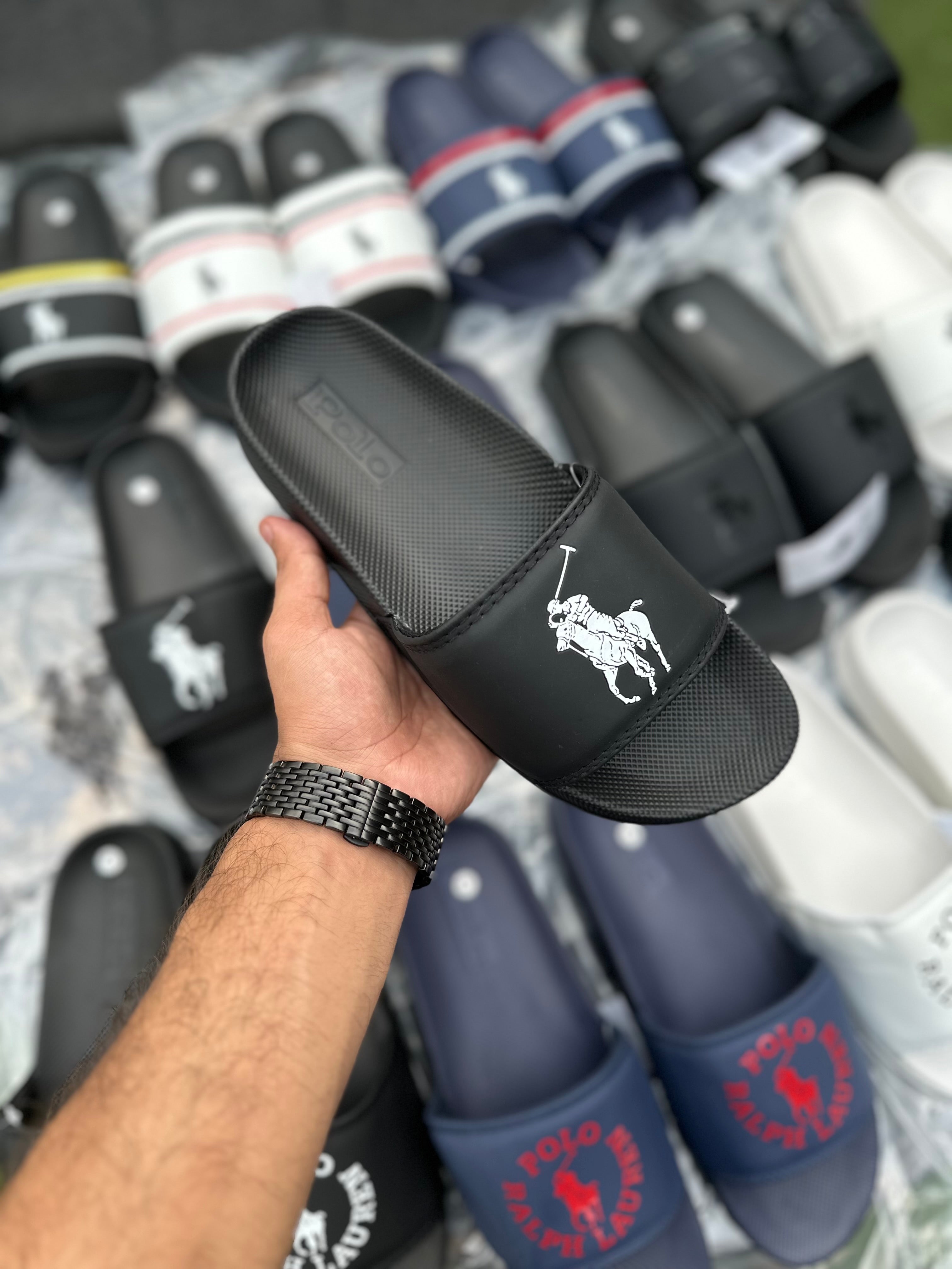 Black Polo Ralph Lauren Polo Slides | SVD