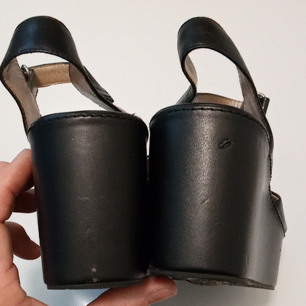 DKNY Tarah Platform Wedge Sandals Leather Black White⦠- Gem