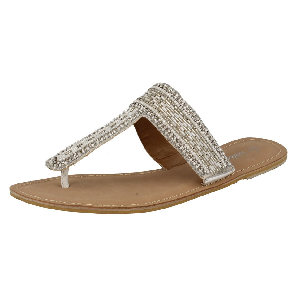 Ladies Spot On Leather Collection Beaded Toe Post Sandals