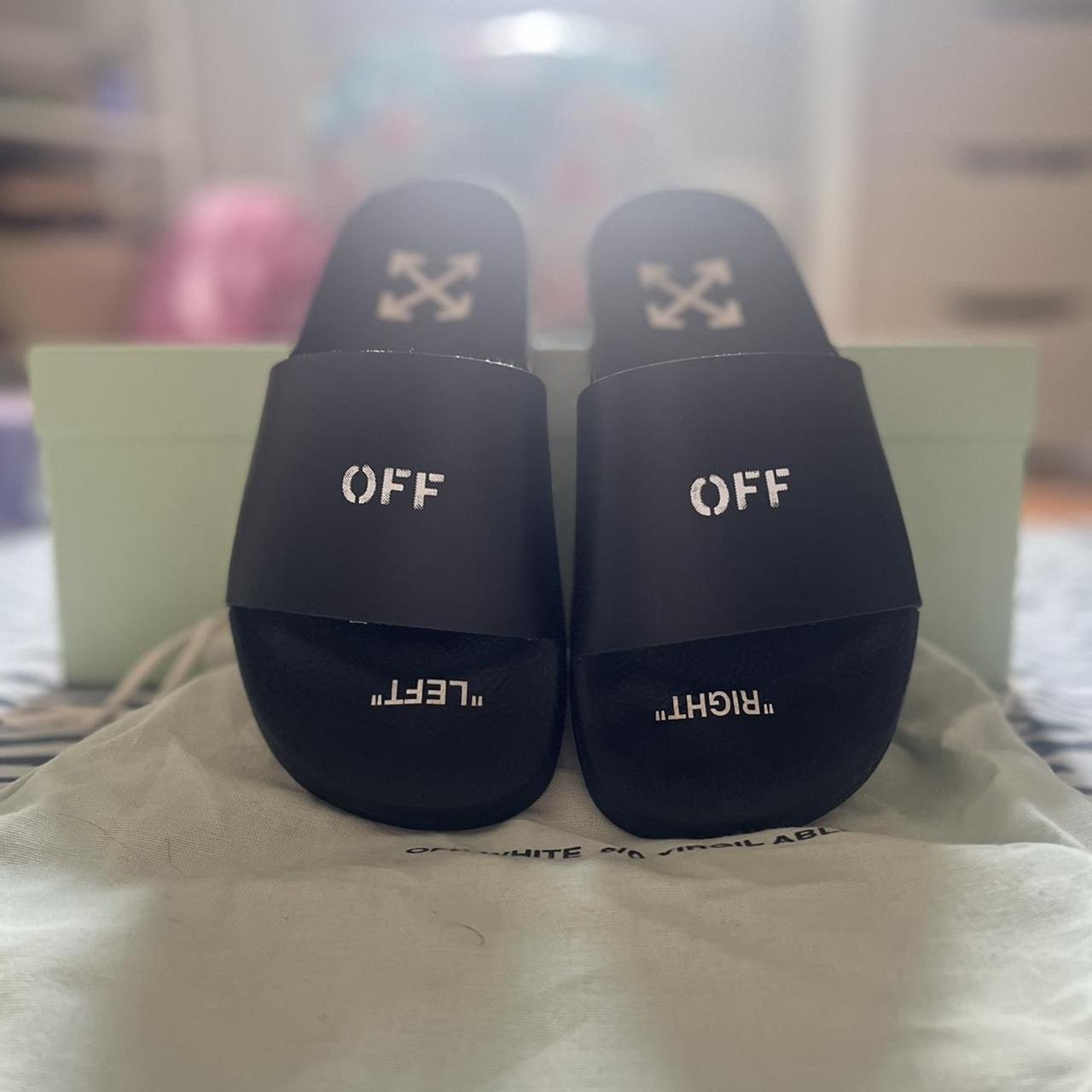 OFF WHITE SLIDERS BRAND NEW NEVER WORN BLACK AND BLUE - Depop
