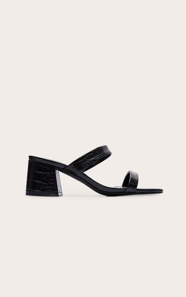 Black Croc Wide Fit Square Toe Block Heeled Mules | Footwear | PrettyLittleThing