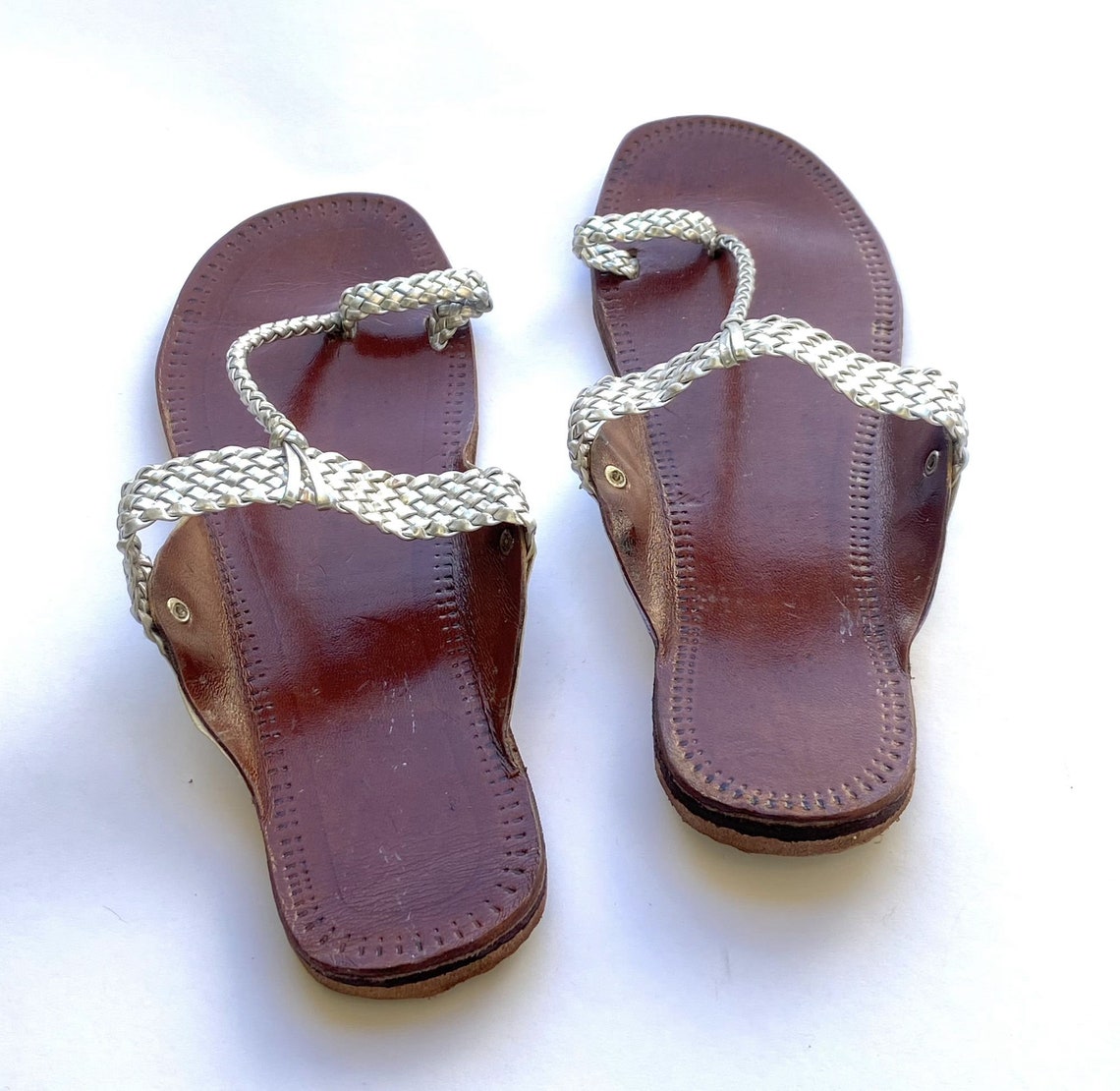 Silver T Strap Kolhapuri Sandals Leather Boho Style Flat - Etsy
