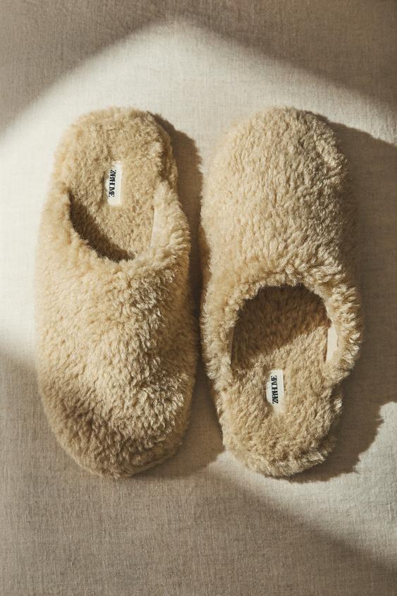 Zara Faux Shearling Babouche Slippers | Babouche slippers, Womens slippers, Slippers