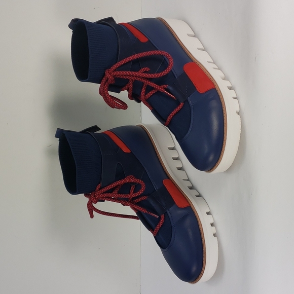 Fitflop | Shoes | Fitflop Glace Knit Leather Midnight Navy Red Lace Up Ankle Boots Womens | Poshmark