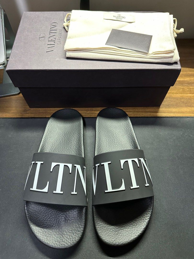 Valentino VLTN Logo Slides, Men's Fashion, Footwear, Flipflops and Slides on Carousell
