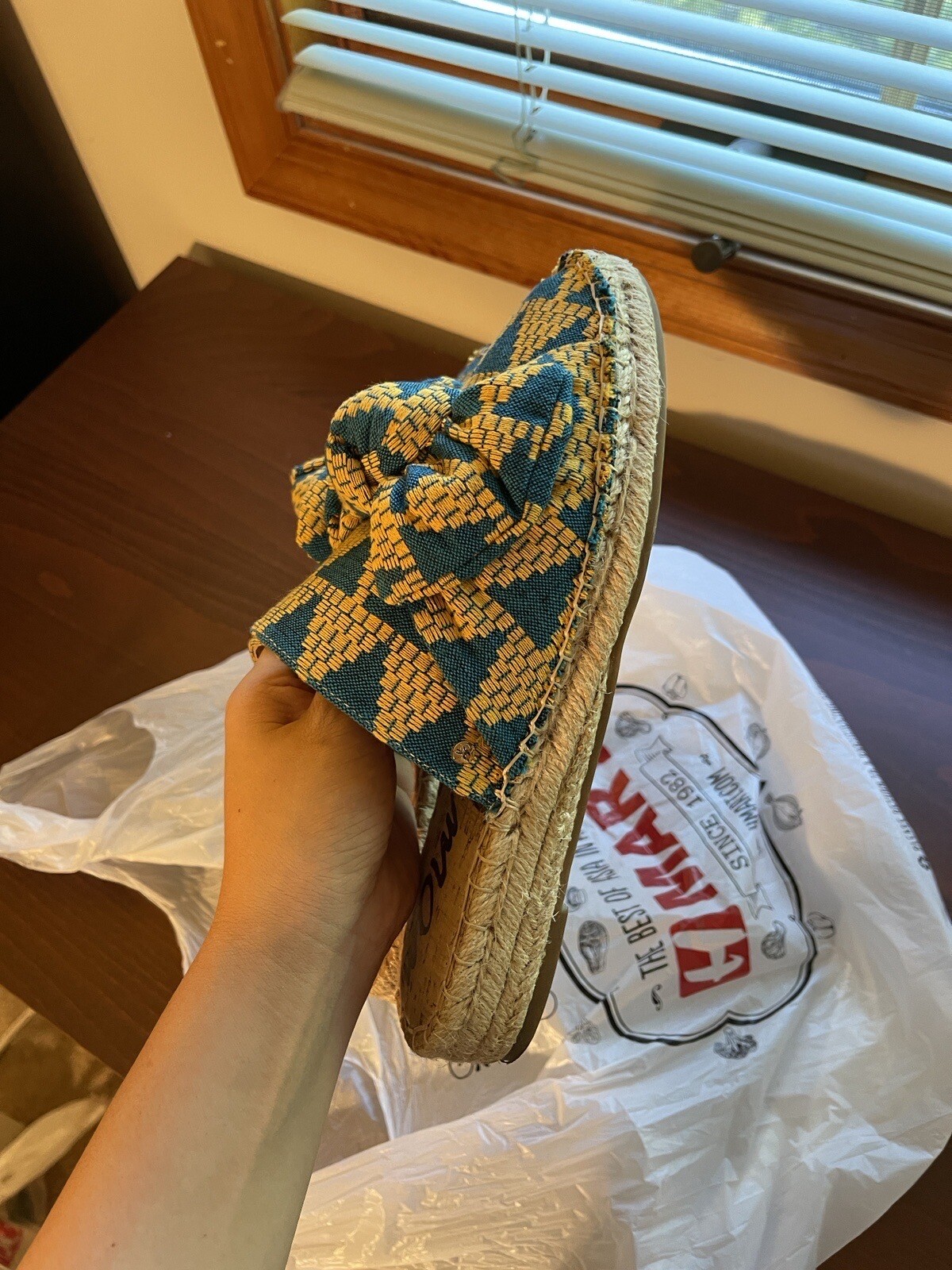 Sam Edelman Blue and Yellow Tribal Slides US6 - Gem