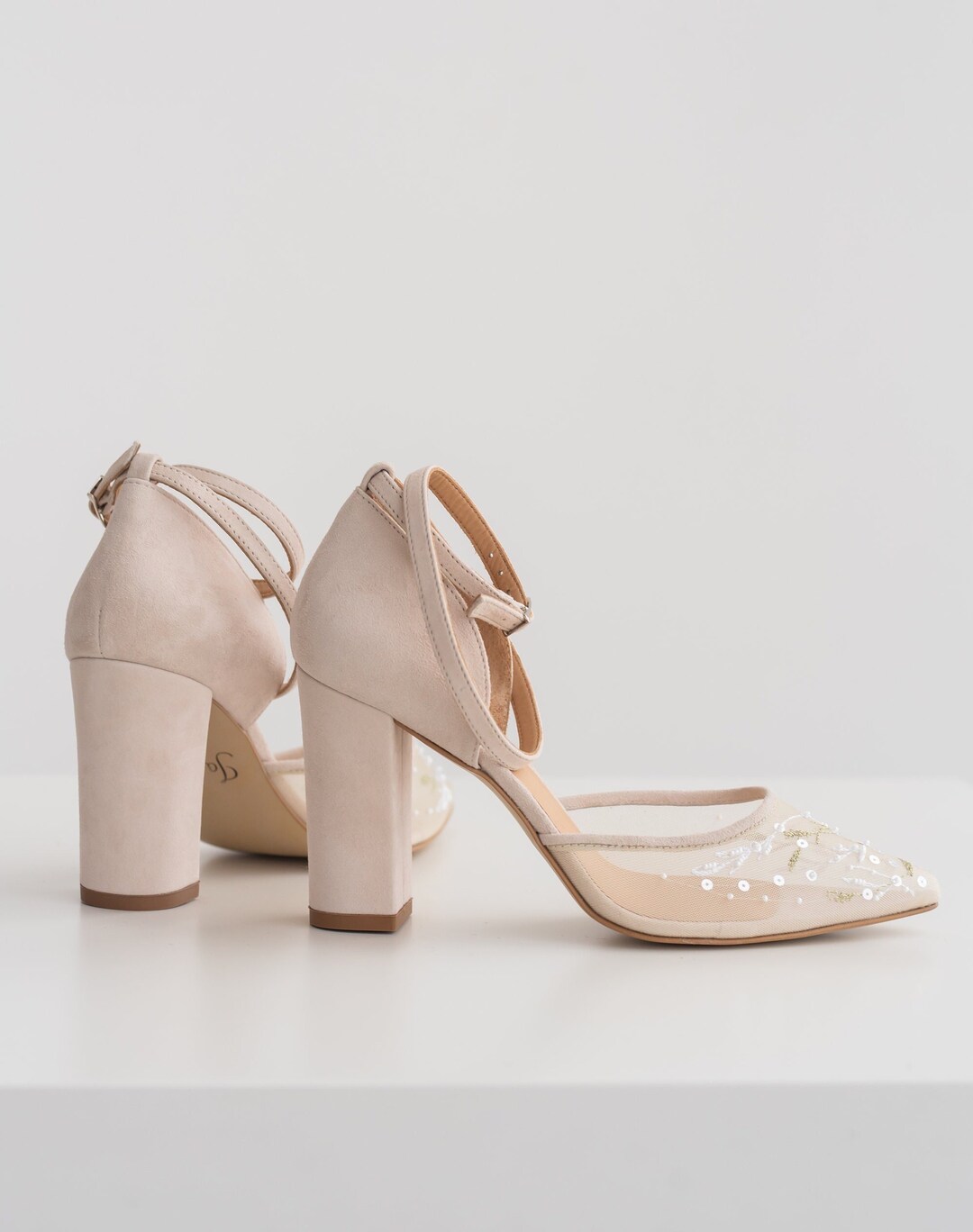 Harriet Wilde Arabella Mid Block Heel Ivory Satin Wedding Sandals | Bridal Shoes | Wedding He