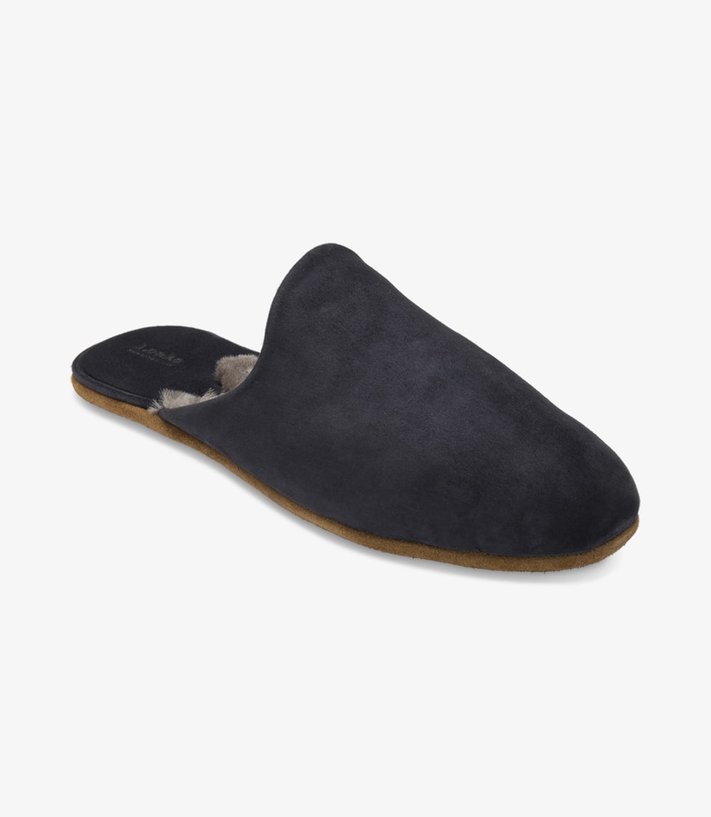 Men's Loake Navy Shearling Suede Slipper | Peter Christian
