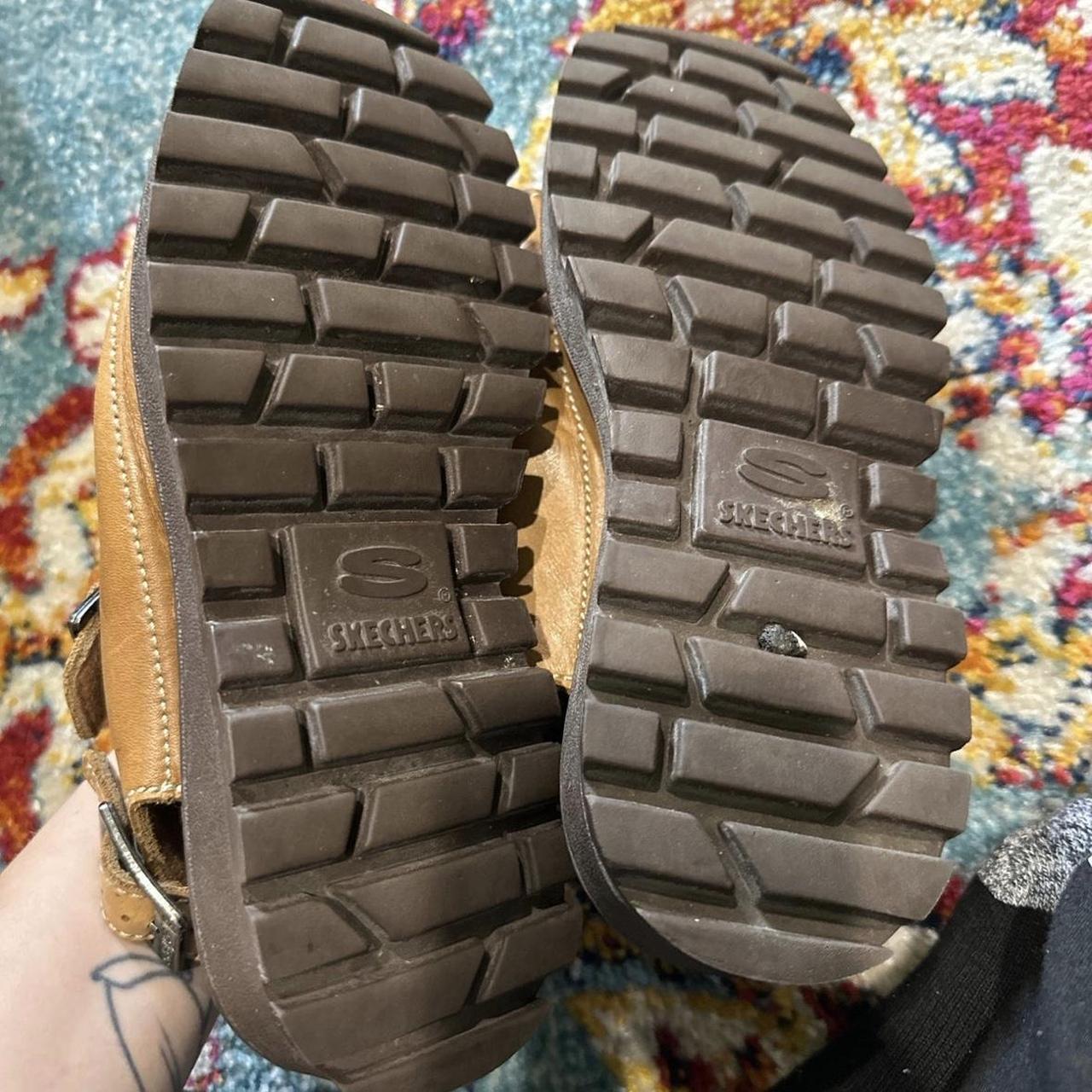 Tan leather sketchers jammers sandals with turquoise | Depop