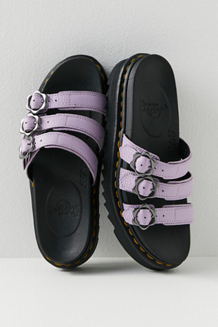 Blaire Flower Buckle Leather Slide Sandals | Dr. Martens