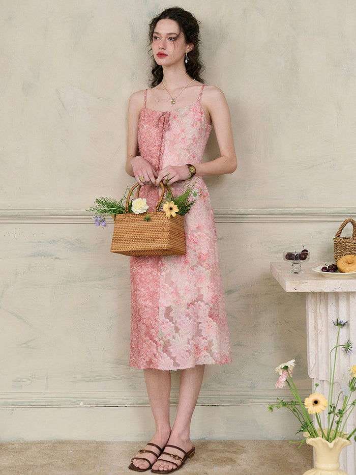 ãFinal SaleãBlaire Floral Contrast Patchwork Bow Square Neck Slip Dres