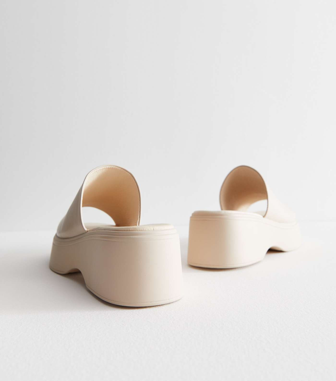 Off White Leather-Look Chunky Flatform Sliders | New Look