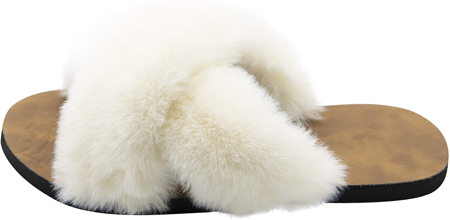Furry Faux Fur Slippers for Men Women Cozy Fluffy House Slippers Slip-on Anti-skid Slides Memory