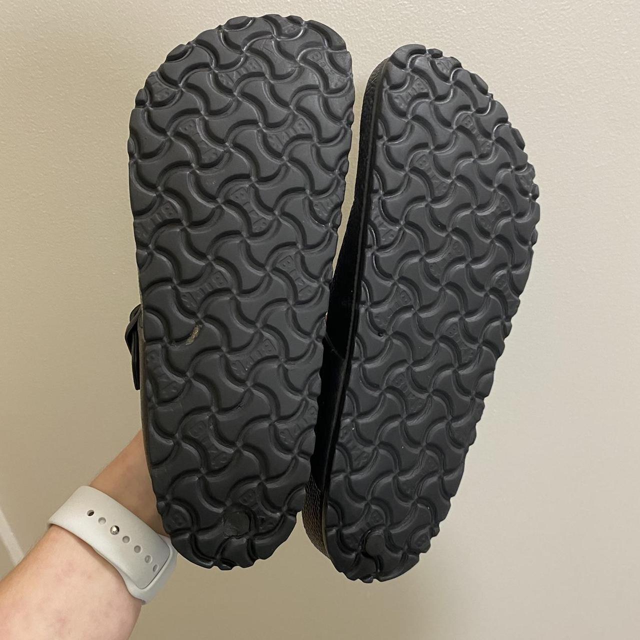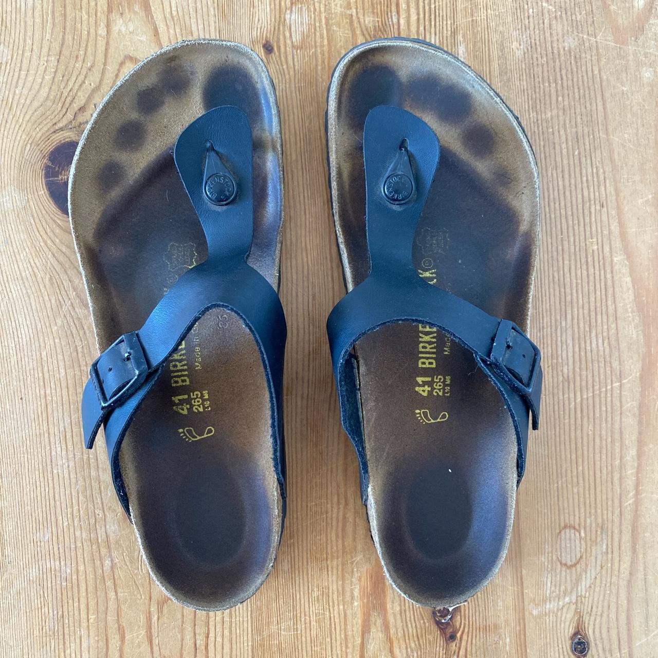 black birks birkenstock flip flops used excellent - Depop