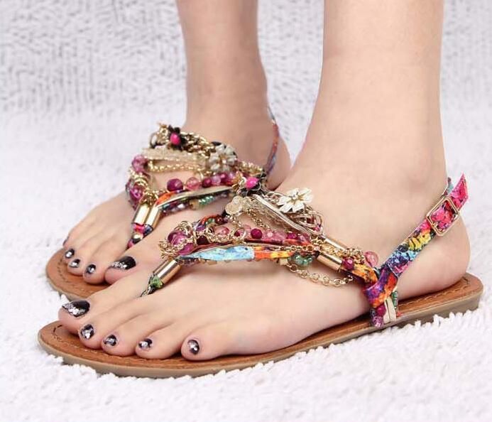 2016 Summer Fashion Bohemian Beaded Flip Sandals Flat Shoes Beach Sandals #A | Womens sandals