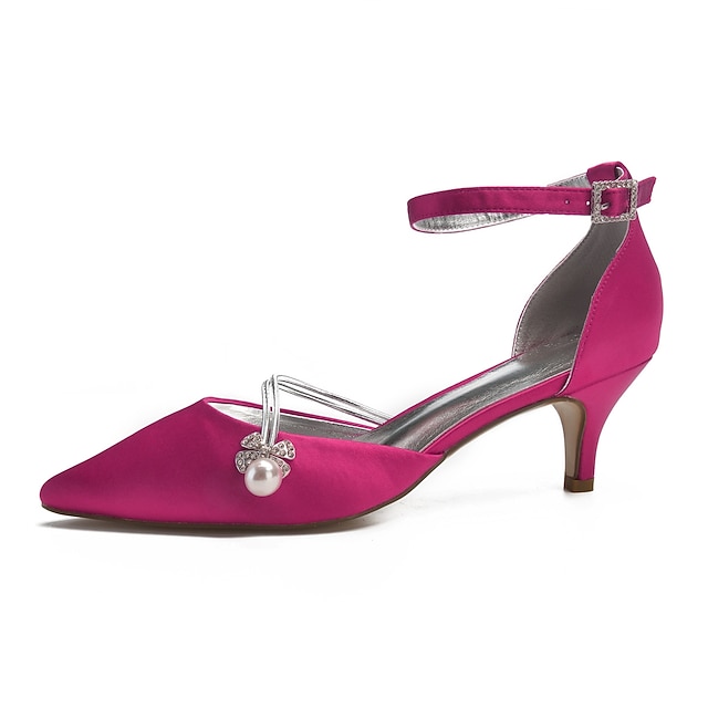 Women's Dark Blue Satin Kitten Heels with Pearl and Rhinestone Charm â Chic Cocktail Party Shoes