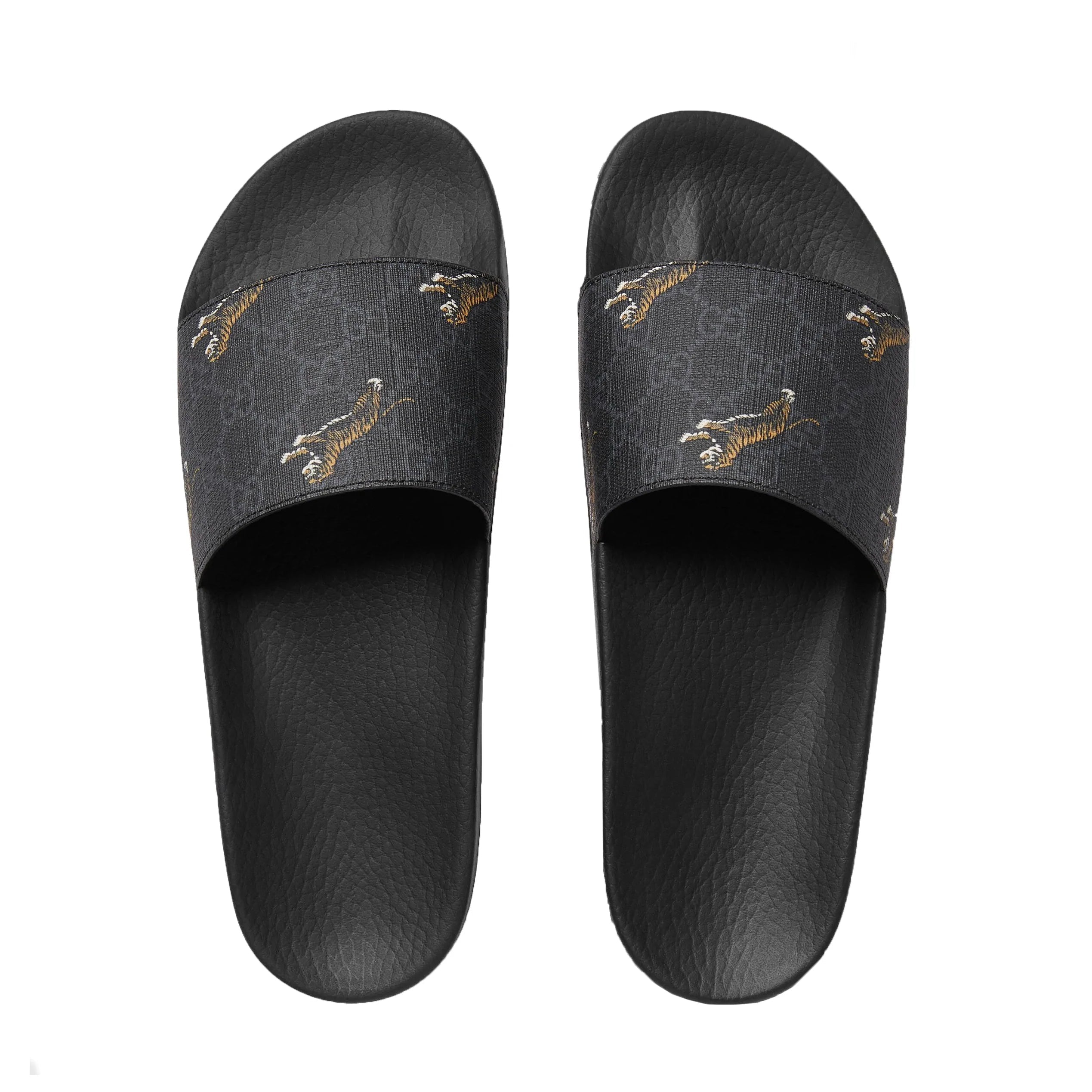 Gucci Rubber GG Supreme Tiger Print Slides for Men - Lyst