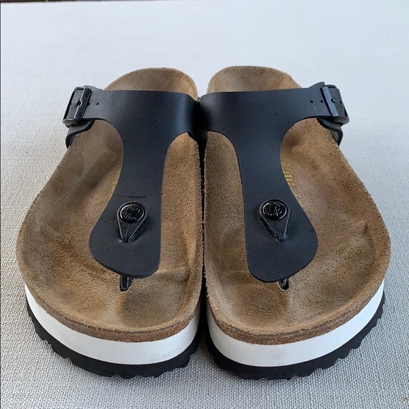 Birkenstock | Shoes | Birkenstock Papillio Gizeh Platform Black White 38 | Poshmark