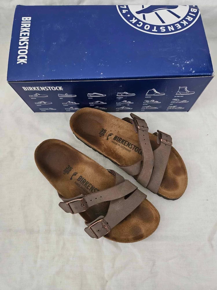 Birkenstock Yao Mocha Two Strap Slide Sandal Size 38 ⦠- Gem