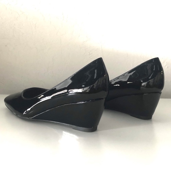 Pierre Dumas | Shoes | Pierre Dumas Black Patent Wedges Heels | Poshmark