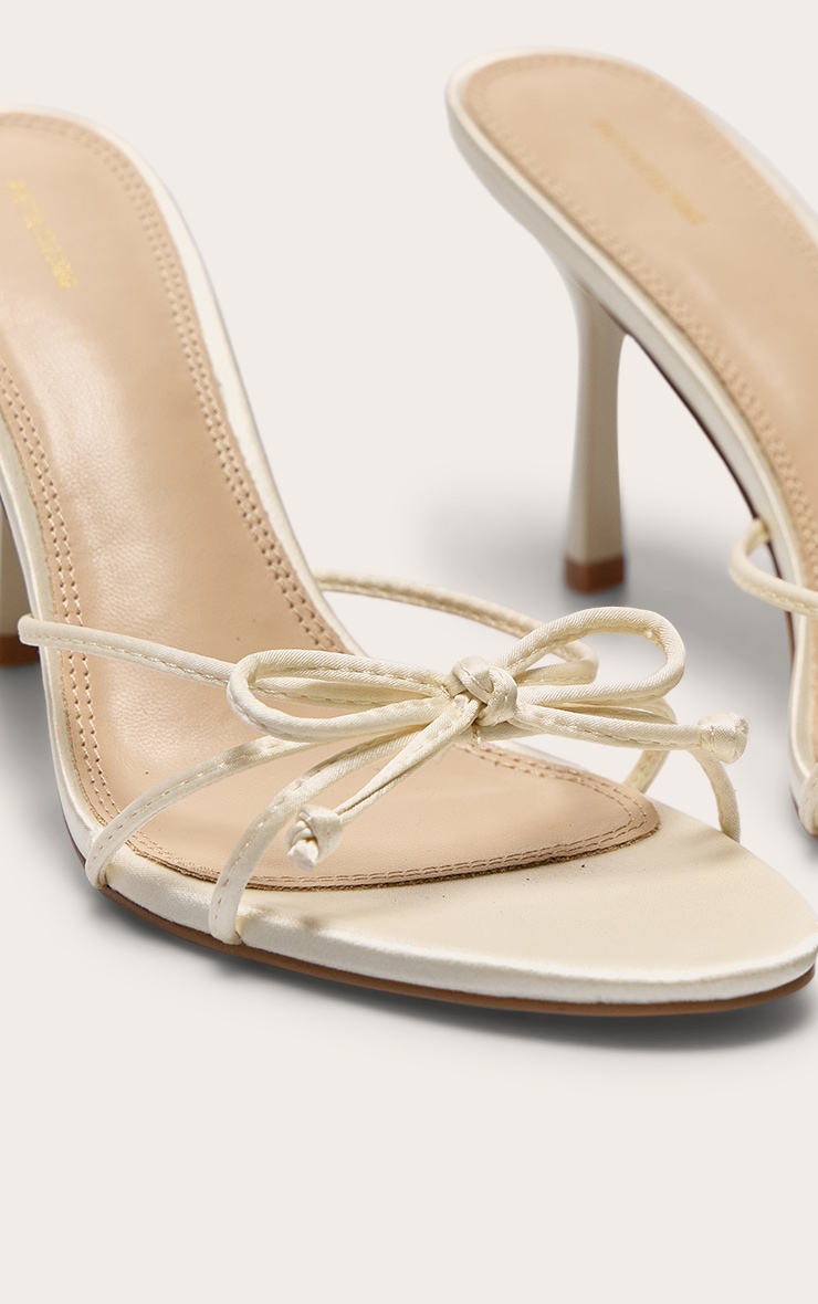 Ivory Round Toe Bow Mid Stiletto Heeled Mules | Footwear | PLT