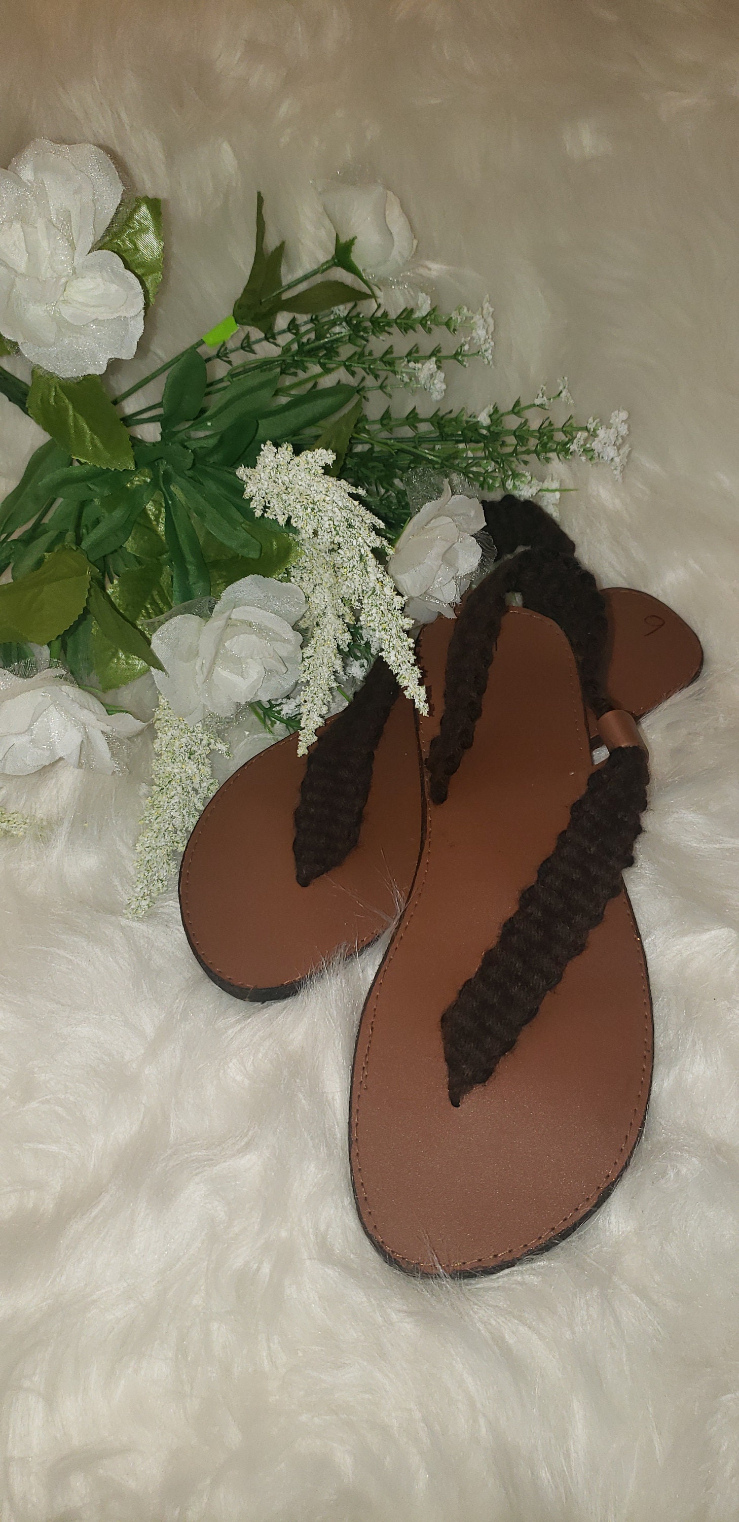 Leather slippers/sandals with rose handmade in Jamaica female | Etsy