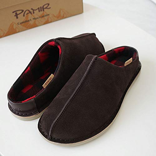PAMIR Mens Genuine Suede Clog Slippers Winter House Shoes with Warm Fleece Lined Indoor and