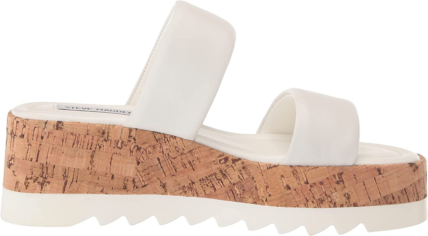 Steve Madden Womenâs Defuse Espadrille Wedge Sandal(White Leather) - STEVE MADDEN