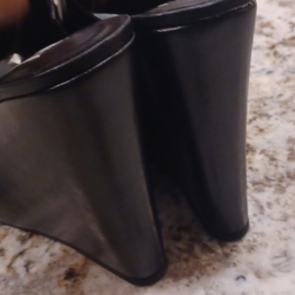 Steve Madden | Shoes | Steve Madden Barona Black Leather Wedge Sandals Size 95 | Poshmark