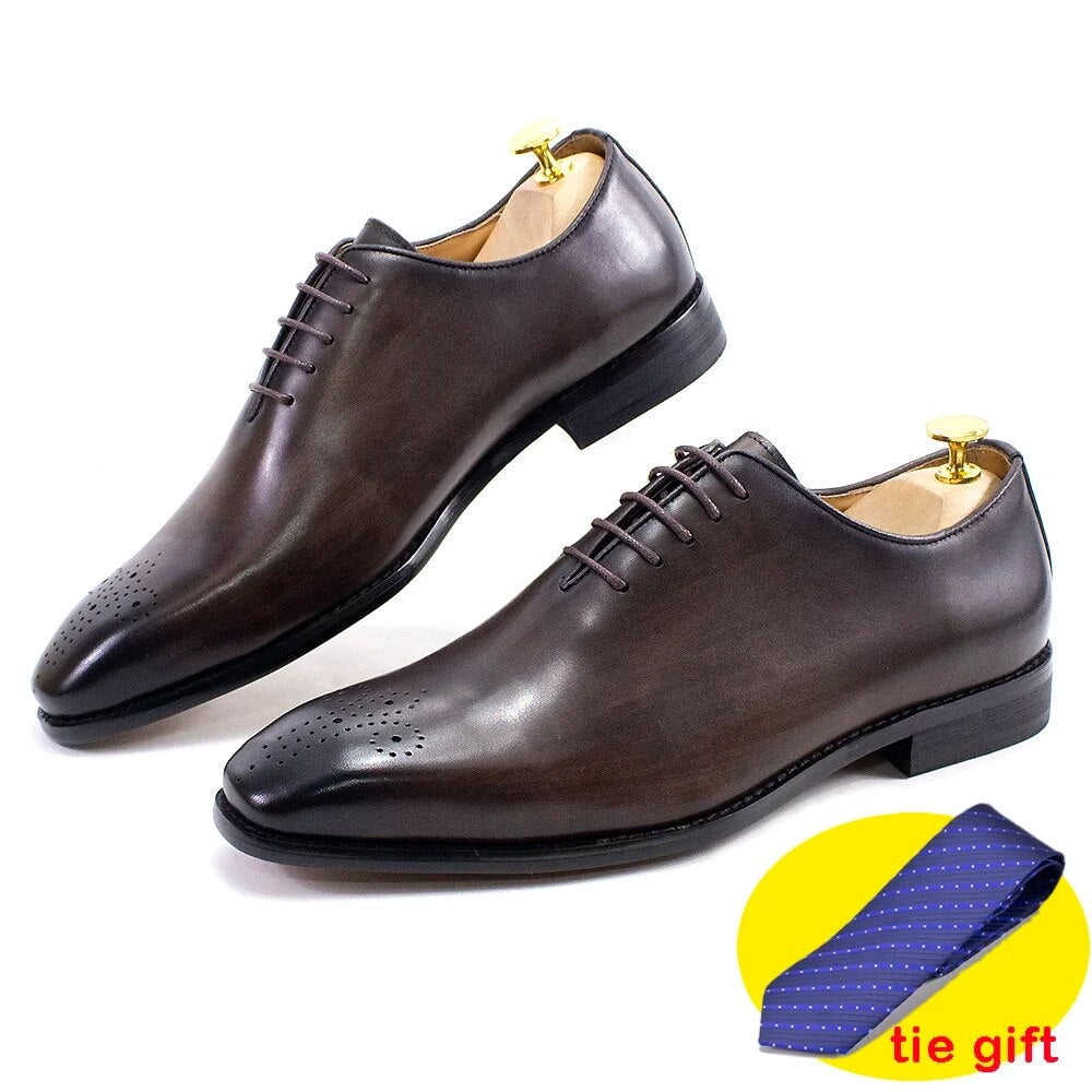 Classic Whole-Cut Mens Oxford Dress Shoes Genuine Leather Calfskin Men's Shoes Handmade Lace Up