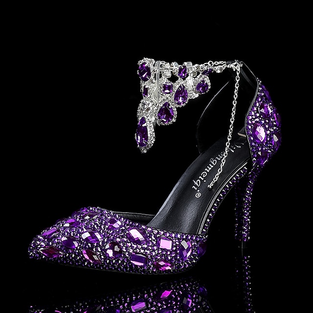 Women's Crystal Rhinestone Prom Shoes with Purple Gemstone Embellishments and Ankle Jewelry