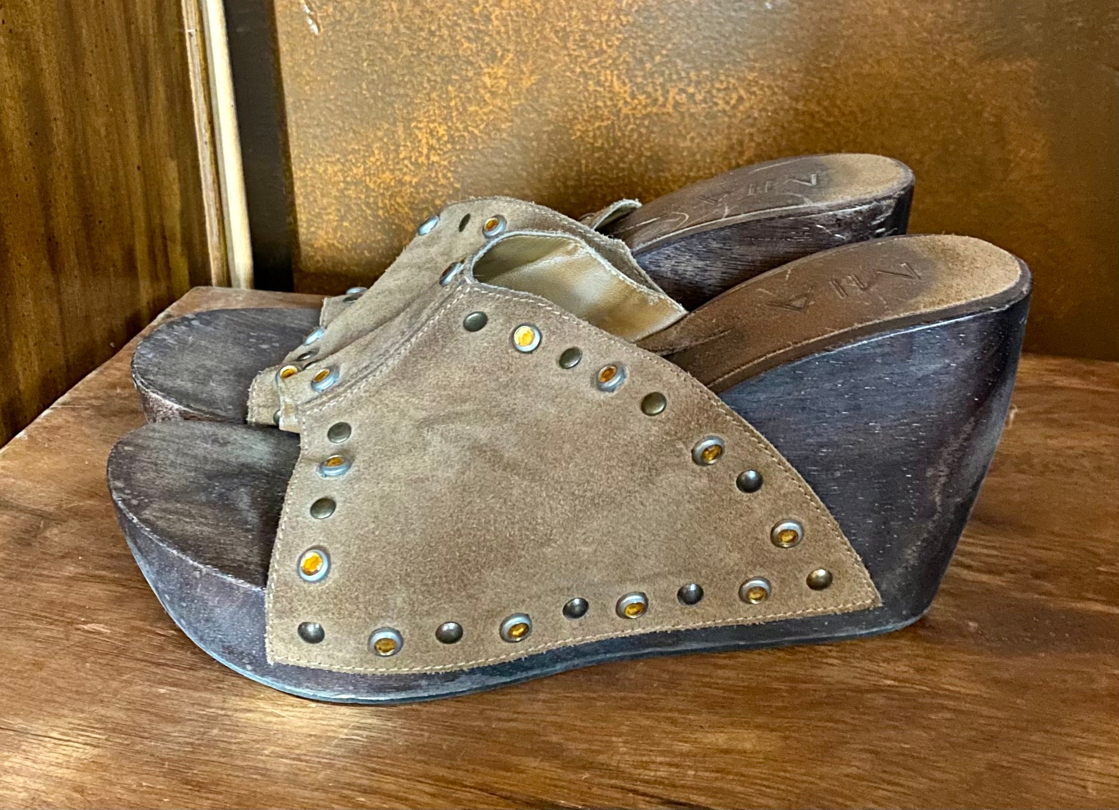 1970s Suede Wood Riveted Wedge Sandals 10.5 - Etsy