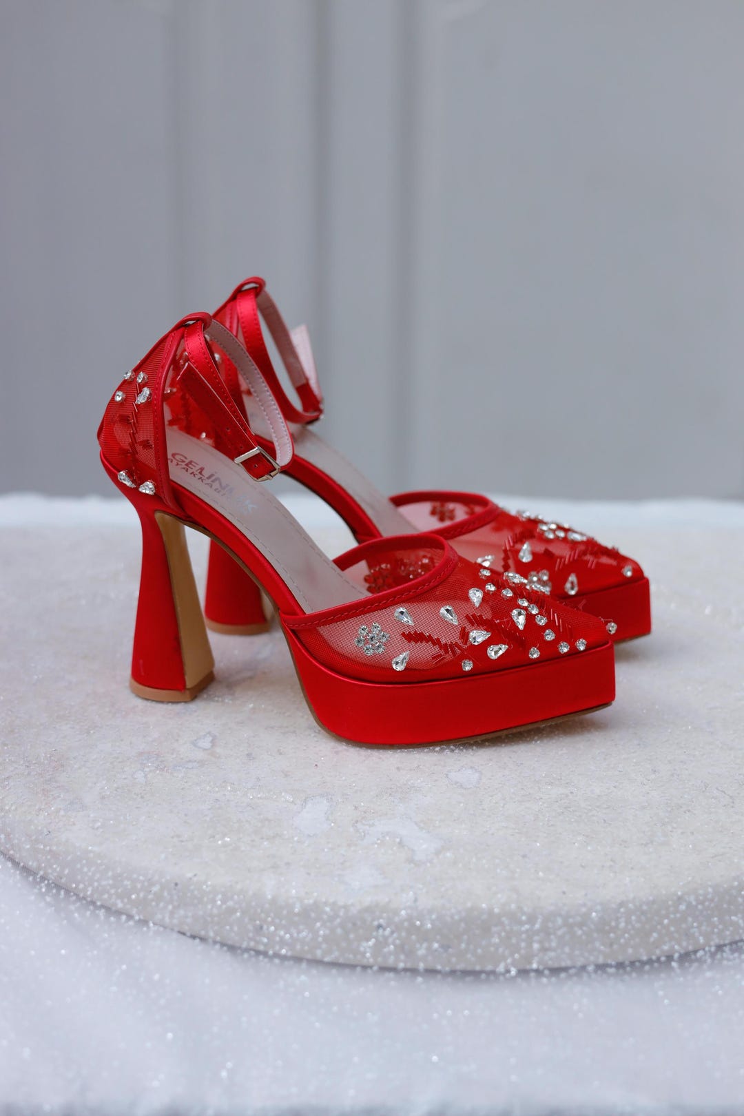Devine red satin pump | Wedding shoes, Crazy shoes, Bridal shoes