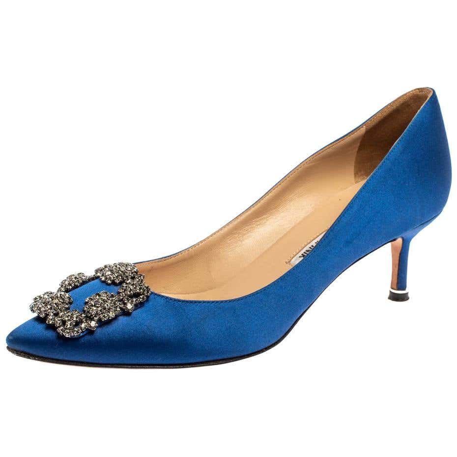 Ready New MANOLO BLAHNIK Hangisi 5cm Pumps in Royal Blue Satin with Dark Crystal on Carousell