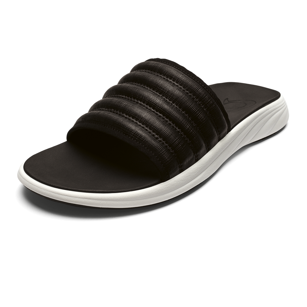 OLUKAI Ohana Leather Mens Slides Black/Black - 14 | Leather slides, Mens slide sandals, Womens