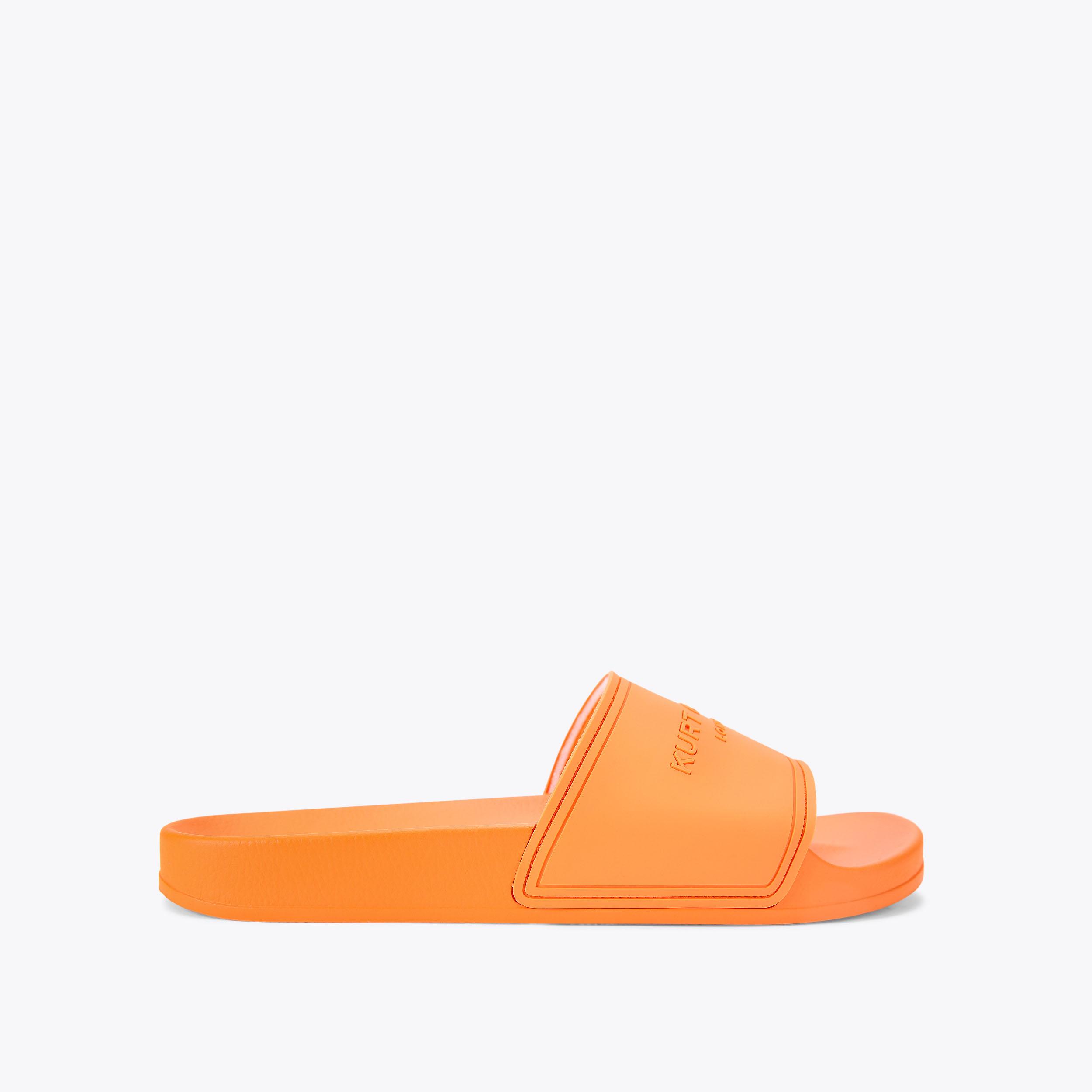Kurt Geiger Front Logo Open Toe Slides In Orange | ModeSens
