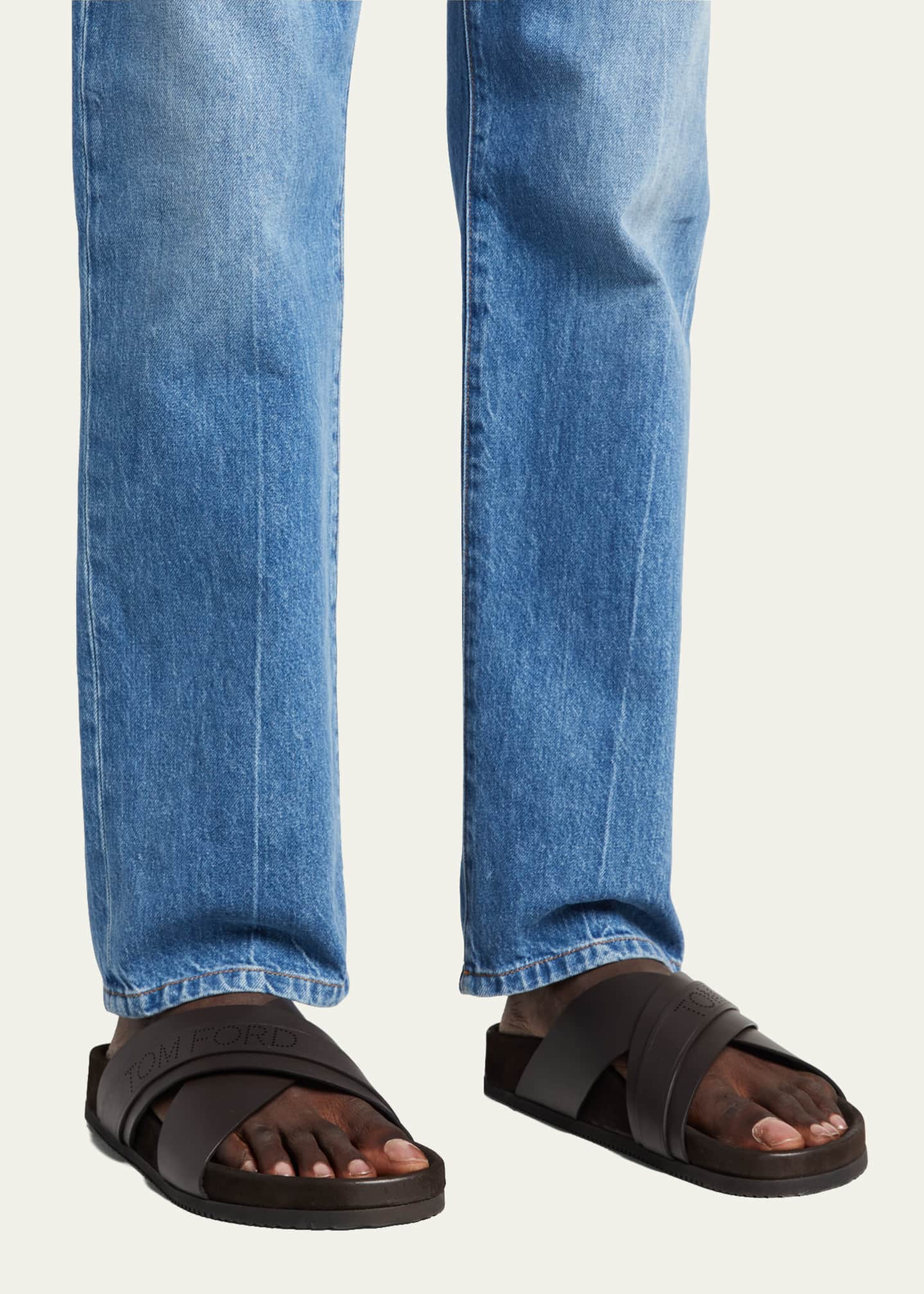 TOM FORD Men's Animal-printed Logo Suede Sandals - Tan Black - Size 12 - Tan Black | Editorialist