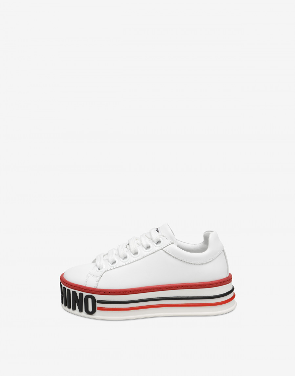 Moschino White & Black Leather Logo Platform Sneakers Moschino