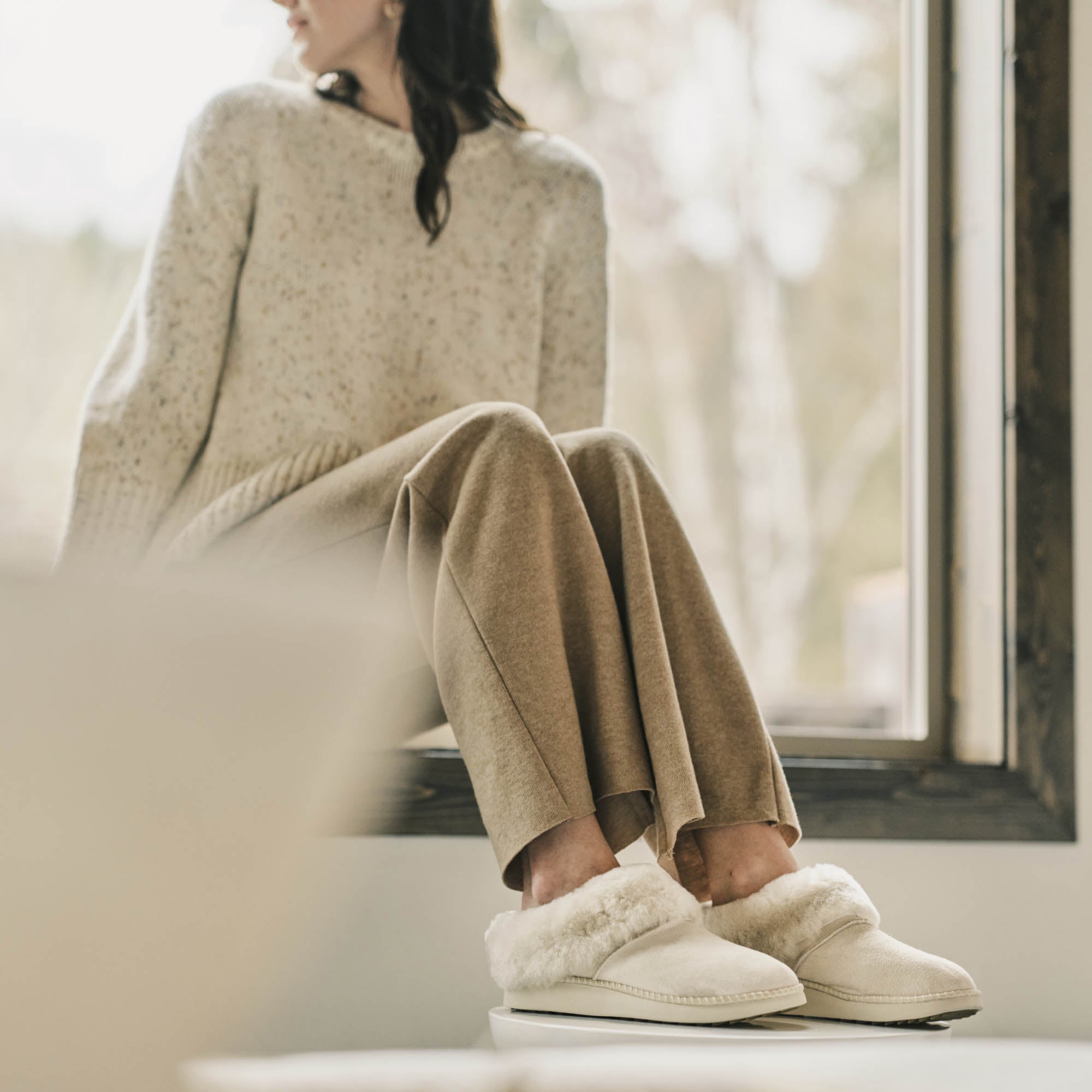 Kuâi Womenâs Fuzzy Slip-On Slippers - Fog | OluKai