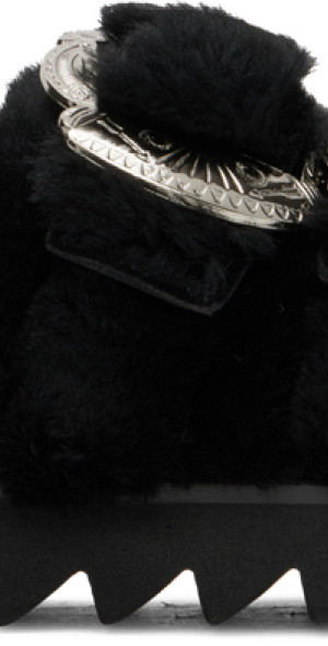 Toga Pulla Black Faux Fur Buckle Sandals Toga Pulla