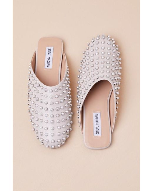 Steve Madden Glimmer Studded Pearl Slides in Pink | Lyst