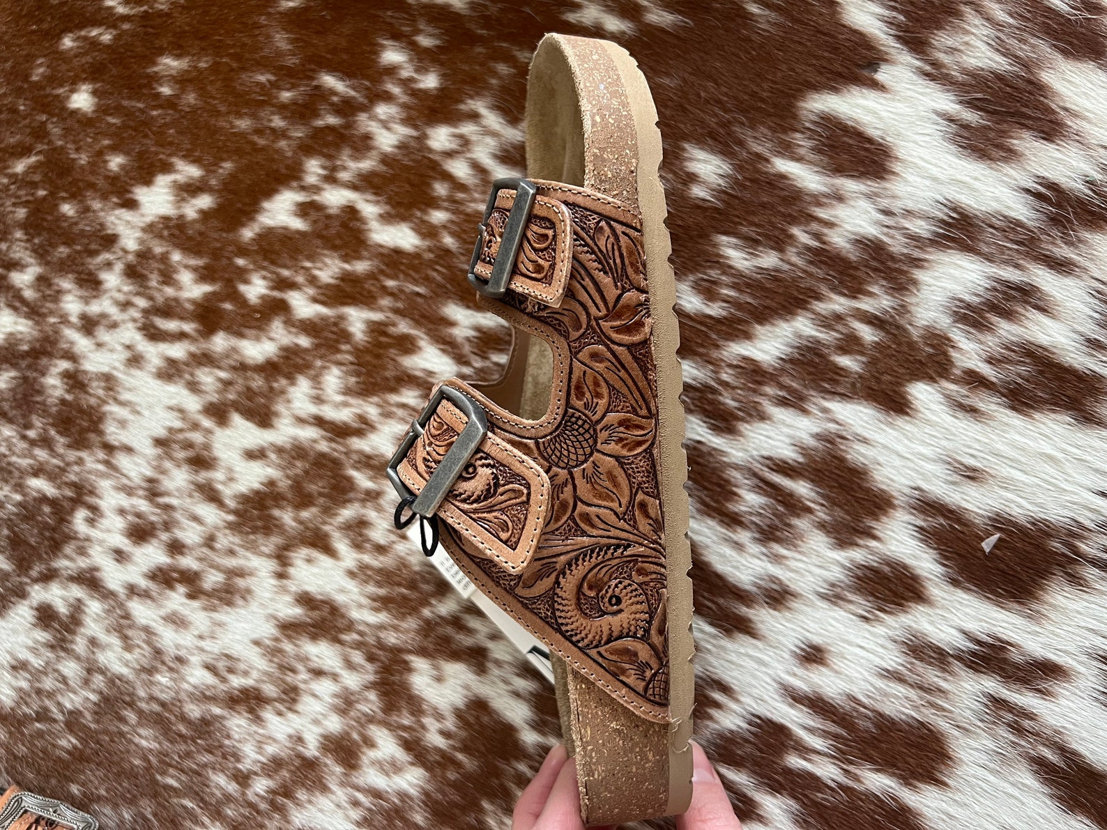 Hand Tooled Leather Sandals â The Branded Spur Boutique