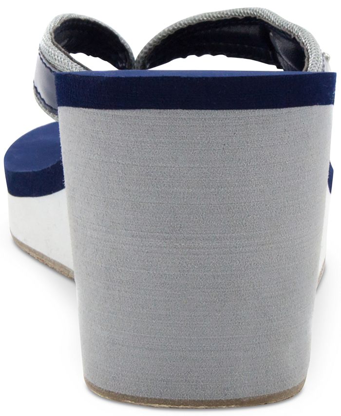 Nautica platform wedge ankle strap sandals, blue silver weave design on wedge | Ankle strap